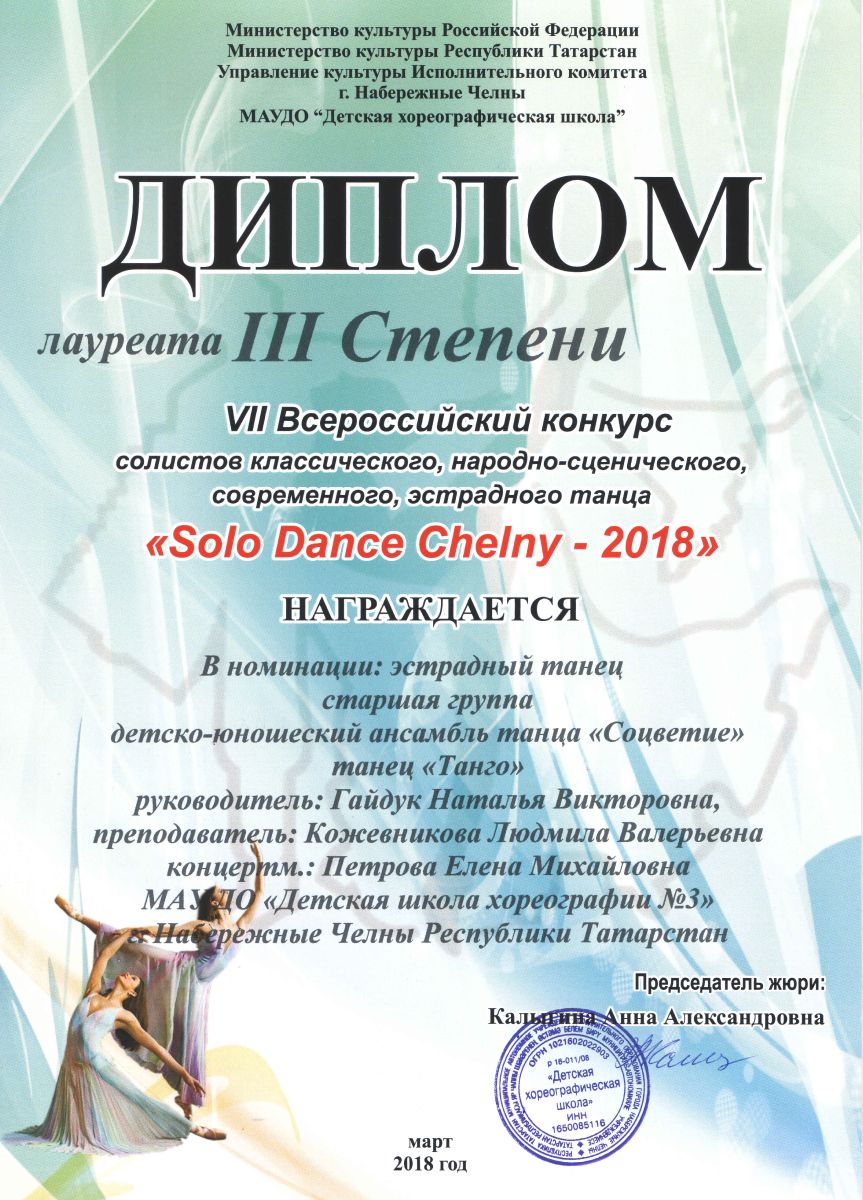 Соло - Дэнс Лауреат 3 степени Соцветие танго Гайдук, Кожевникова.jpg