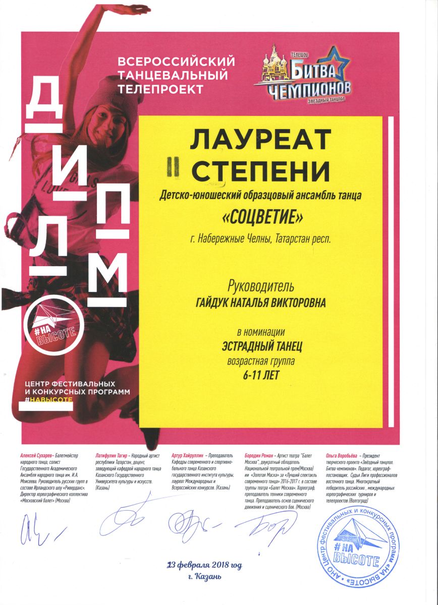 /Всероссийский танцевальный телепроект Лауреат 2 степени Соцветие эстрадный танец 6-11 лет.jpg