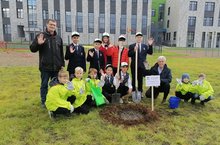А вот и второй потомок императорского дуба в Челнах. 12.10.2021 был высажен саженец, выращенный из жёлудя 363-летнего дуба Петра Великого, который обитает в Летнем саду г. Санкт-Петербург. Его сажала целая делегация МБОУ "Средняя школа №30" и членов детской организации "Союз друзей природы" Детского эколого-биологического центра №4. Долгих лет роста царским дубам
