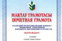 Заместитель директора по учебно-производственной работе, председатель профсоюзной организации Галиева Гулия Рифгатовна награждена ПОЧЕТНОЙ ГРАМОТОЙ татарского республиканского комитета профсоюза работников народного образования и науки РФ.