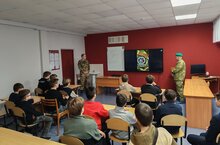 В рамках военно-патриотического месячника в Центре прошла встреча обучающихся с председателем Региональной общественной благотворительной организации Республики Татарстан в области патриотического взаимодействия и поддержки ветеранов боевых действий "Добровольческий Штаб маневренный группы "Барс" Нисафутдинов Айрат Харасовичем и начальником штаба ДШМГ «Барс», заместителем председателя Ассоциации «Городской Совет Ветеранов СВО», депутатом Городского Совета г. Набережные Челны Нусратовым Тимуром Эдуардовичем. Встречи с участниками СВО - это важный шаг в патриотическом воспитании молодёжи и укреплении связи поколений. Такие встречи позволяют формировать у молодёжи чёткие моральные ориентиры, понимание долга, чести и самоотверженности. Рассказы о подвигах современников закладывают фундамент для формирования гражданской ответственности, любви к Родине и готовности к защите её интересов.