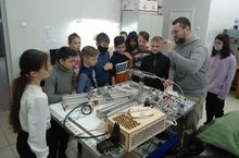 Для учащихся гимназии №57 наш педагог Шпарский И.Б. провел экскурсию по Центру и мастерским. Познакомил детей с оборудованием, станками, 3D принтерами, рассказал о достижениях обучающихся. Ребята своими глазами увидели лазерную резку и гравировку.