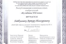 19-20 апреля в г. Казани состоялась Олимпиада юных изобретателей "Кулибины XXI века". Среди 30 проектов лучшим оказался оказался проект Хайбуллина Артура ( ученика сош №60, 10 класс) педагога Юсупова Р.М. "Велосипед для детей с ДЦП".