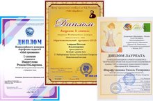 Дипломы и сертификаты следующих конкурсов: "Надо жить честно", "Мой любимый учитель", "Социальная антитабачная, антиалкогольная и антинаркотическая реклама" https://cloud.mail.ru/public/4qjq/XzcaLh7CM
