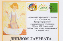 Поздравляем нашего педагога Шарафутдинову Г.Т., ставшую лауреатом III Международного очного конкурса творческих проектов педагогов-художников, прошедшего в г. Москва в рамках педагогического форума XXII Мастерская Неменского. Кроме того, в рамках данного мероприятия был заключен договор о сотрудничестве в сфере инновационной деятельности между Детской художественной школой №2 и ГАОУ ВО МИОО Центр НХО г. Москва.