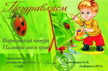 Поздравляем Борисову С.В., Тарасову В.А., Купцову М.В., Алексееву В.В. - педагогов, подготовивших победителей и призеров III Всероссийского конкурса "Палитра родного края" 16.03.2015