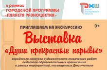МАУДО «Детская художественная школа №2» в рамках городской программы «Планета Разноцветия» приглашает учащихся общеобразовательных школ 18-22 октября 2021 г. с 10.00 до 13.30 ч. на экскурсию по выставке творческих работ педагогов образовательных организаций «Души прекрасные порывы».