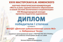 Поздравляем Детскую художественную школу №2 с заслуженной победой в VIII Международном конкурсе проектов педагогов-художников. Руководитель проекта "Творчество без границ" директор школы Марина Владимировна Белкина. Желаем успехов и дальнейших побед!