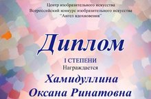 Преподаватели Хамидуллина Оксана Ринатовна (I степени), Салихова Рамзия Халтовна (II стеени), Шайхразиева Наиля Абылфатиховна (III степени), Купцова Мария Вячеславовна награждены дипломами Всероссийского конкурса изобразительного искусства «Ангел вдохновения»