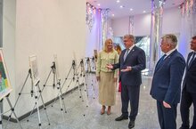 В рамках мероприятий посвященный Дню УЧИТЕЛЯ наша школа организовала выставку творческих работ учащихся "Учителям посвящается..." Выставка украсила торжественное мероприятие во Дворце торжеств, где мэр города Наиль Магдеев вручал награды лучшим работникам отрасли. Директор школы Белкина Марина Владимировна провела для мэра небольшую экскурсию по выставке и рассказала о работах и достижениях учеников.