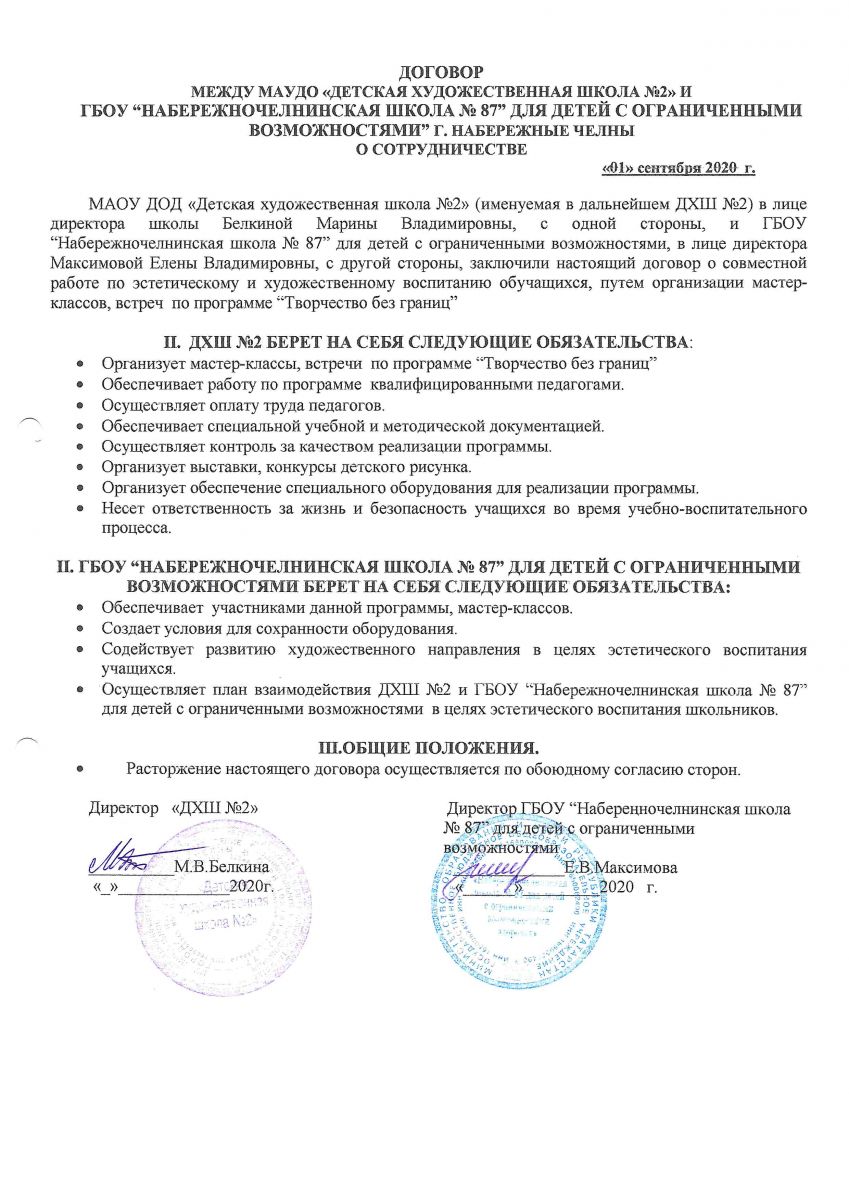 Договор о сетеовм взаимодействии с ГБОУ «Набережночелнинская школа №87 для детей с ОВЗ"