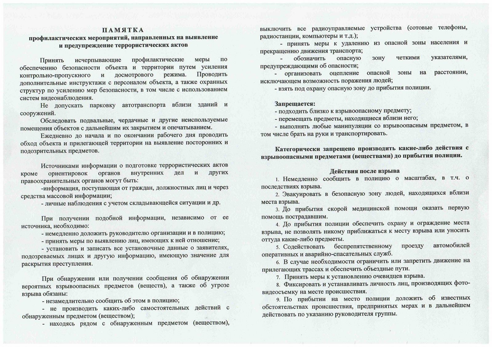 Памятка школьникам по поведению при угрозе совершения террористического акта