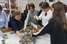 Городской телеканал «Челны ТВ» сняли репортаж о том, как учащиеся школы "ДА-ДА" рисуют наклейки для фронтовых свечей.