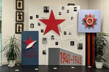 Ко Дню Победы в фойе школы оформлен стенд "Стена Памяти", на котором размещены портреты участников Великой Отечественной войны.