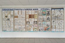 По итогам летней художественной практики с зарисовками достопримечательностей города Владимир, была оформлена выставка в холле школы.