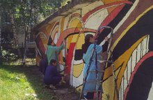 Учащиеся школы под руководством преподавателя Нигматзяновой Галины Александровны обновили рисунок на стенах гаража. Все заиграло в ярких красках