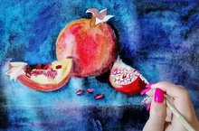 24 апреля прошел мастер-класс «Фрукты акварелью», на котором участники писали гранат в технике «по-сырому»