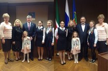6 мая в Мэрии города Набережные Челны состоялось чествование Руководителем Исполнительного комитета Магдеевым Н.Г. юных победителей и призёров XV Республиканского телевизионного конкурса эстрадного искусства "Созвездие - Йолдызлык". Наиль Гамбарович выразил своё признание и восхищение юным талантам города и их наставникам - преподавателям. Также признание и поздравления юные артисты получили от руководителя проекта "Созвездие - Йолдызлык" - Д. Туманова, который специально для этой встречи приехал из Казани. Всем участникам торжества были вручены памятные подарки, преподавателям - цветы. От нашей школы в мероприятии приняли участие - Куркина Елизавета (2 место в конкурсе), и дуэт Кобахидзе Медея и Куюкова София (3 место), класс преподавателя Колтуновой Татьяны Николаевны.