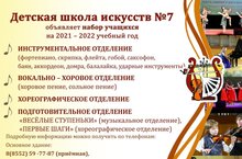 Детская школа искусств №7 объявляет набор 20.05.2021