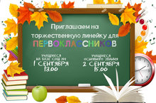 Приглашаем первоклассников на торжественную линейку! Для учащихся на базе СОШ №4 -1 сентября в 13:00, для учащихся основного здания - 2 сентября в 15:00.
