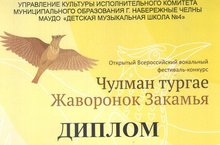 на Всероссийском конкурсе «Чулман Тургае – Жаворонок Закамья»