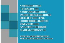 8 апреля состоялся Региональный практико-ориентированный семинар "Современные технологии сопровождения и развития одаренных детей в системе дополнительного образования художественной направленности". Семинар проведен ДШИ №13 совместно с ГАПОУ "Набережночелнинский колледж искусств". Всего в семинаре приняли участие более 100 педагогов УДО Республики Татарстан. В настоящее время формируется сборник материалов семинара. О готовности сборника и сертификатов будет сообщено дополнительно.