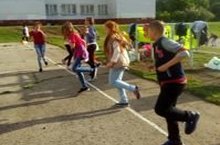Сегодня, в День России, педагоги школы провели Веселые старты для школьников микрорайона на досуговой площадке Гимназии № 54.