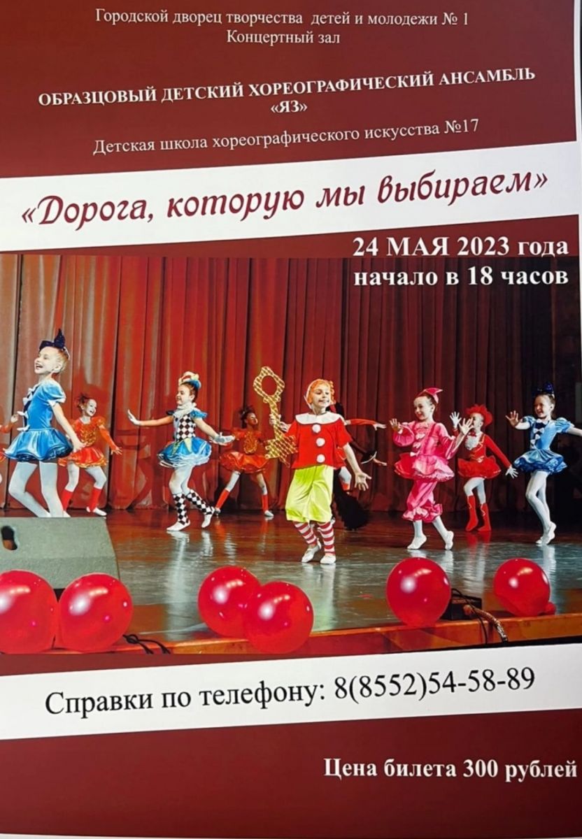 24 мая 2023 в 18:00 пройдет отчетный концерт Детской школы хореографического искусства №17 "Дорога, которую мы выбираем" в концертном зале ГДТДиМ №1.