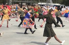 На городском Майдане сегодня челнинцы поздравляли с Днем Победы ветеранов, тружеников тыла, гостей нашего города, всех тех, кто бережно хранит память о тех днях. И наши танцоры приняли участие в праздничной постановке.