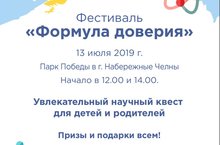 Фестиваль "Формула доверия" состоится 13 июля 2019 г. в Парке Победы г. Набережные Челны. Начало в 12:00 и 14:00.