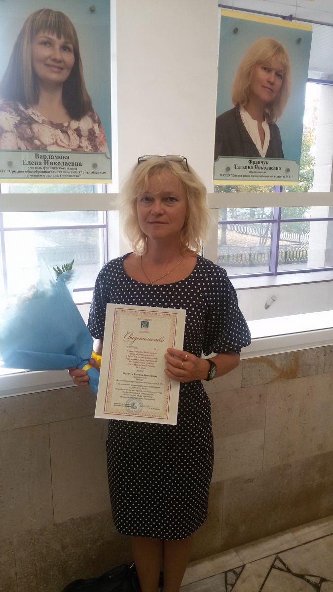 Опубликовано: 11.10.201610 октября состоялось награждение лучших педагогов города с занесением на городскую Доску Почёта. За педагогическое мастерство, высокие результаты профессиональной деятельности. значительный вклад в развитие муниципальной системы образования награждена преподаватель ДШХИ № 17 ФРАНЧУК ТАТЬЯНА НИКОЛАЕВНА. ПОЗДАВЛЯЕМ ТАТЬЯНУ НИКОЛАЕВНУ И ЖЕЛАЕМ ДАЛЬНЕЙШИХ ТВОРЧЕСКИХ УСПЕХОВ!