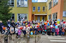 Нарядно одетые малыши, с георгиевскими лентами на груди и флажками в руках выстроились в ровные ряды. Воспитанники сада вместе со своими воспитателями под звучание военных песен прошли «Бессмертным полком» с портретами своих дедов и прадедов по территории учреждения.