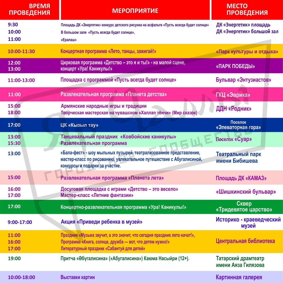 Программа праздничных мероприятий, посвященных Дню защиты детей в Челнах 29.05.2022