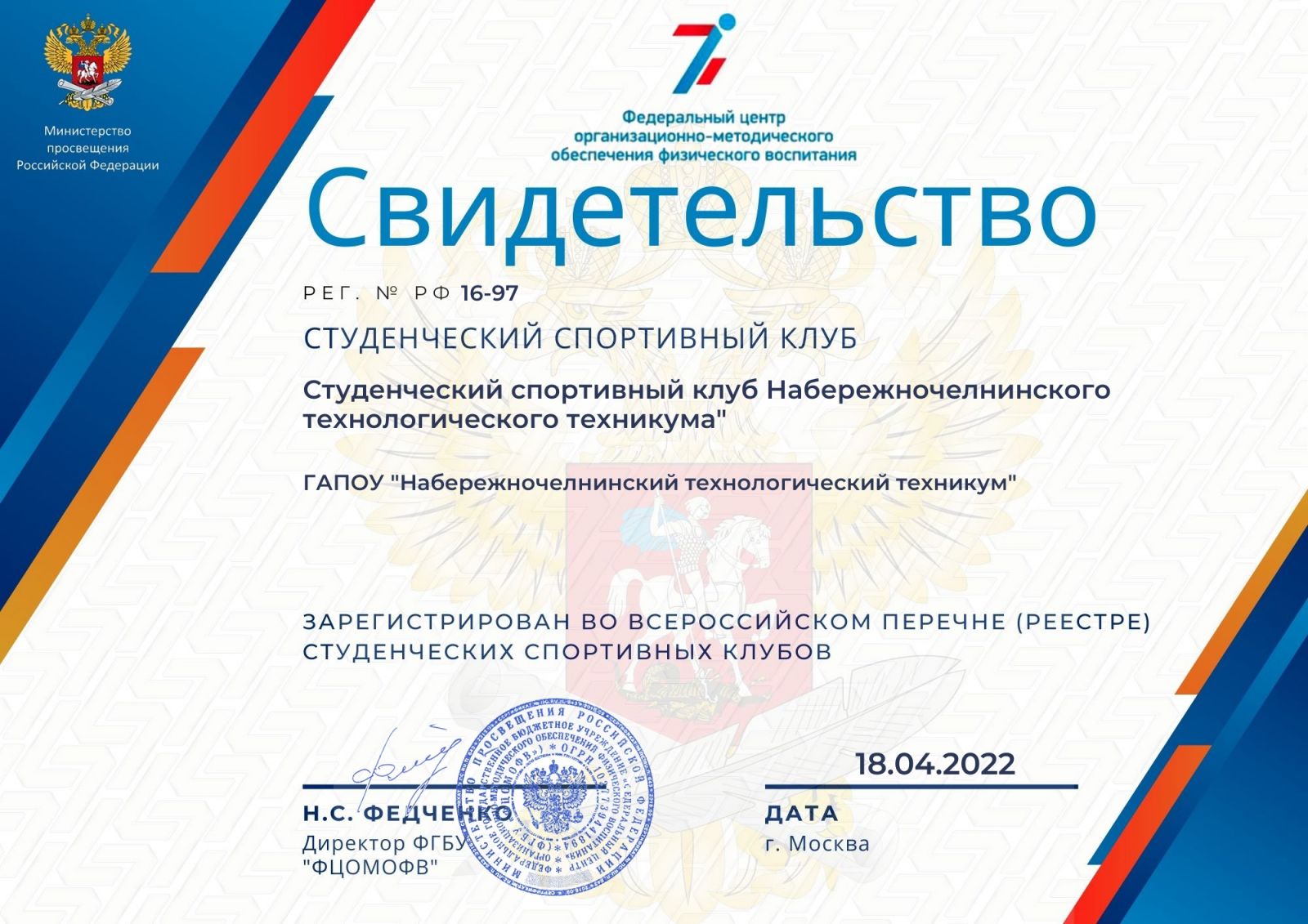 - Положение о студенческом спортивном клубе (ЭЦП)