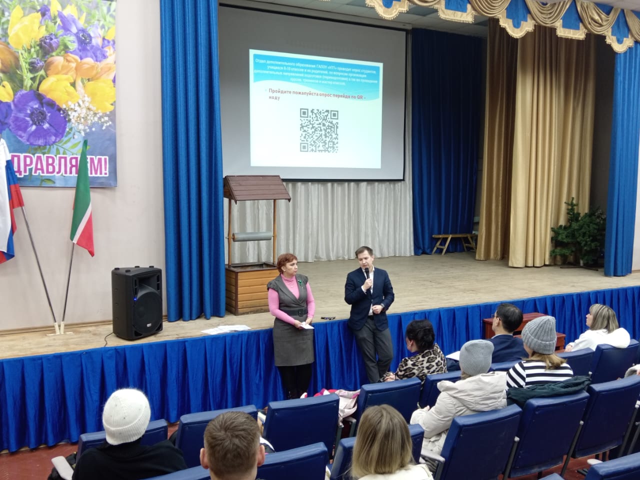 Опубликовано: 28.12.2023На минувшей неделе, 21 декабря 2023 года сотрудники приемной комиссии НТТ приняли участие в родительском собрании обучающихся 8-х классов 35 школы.