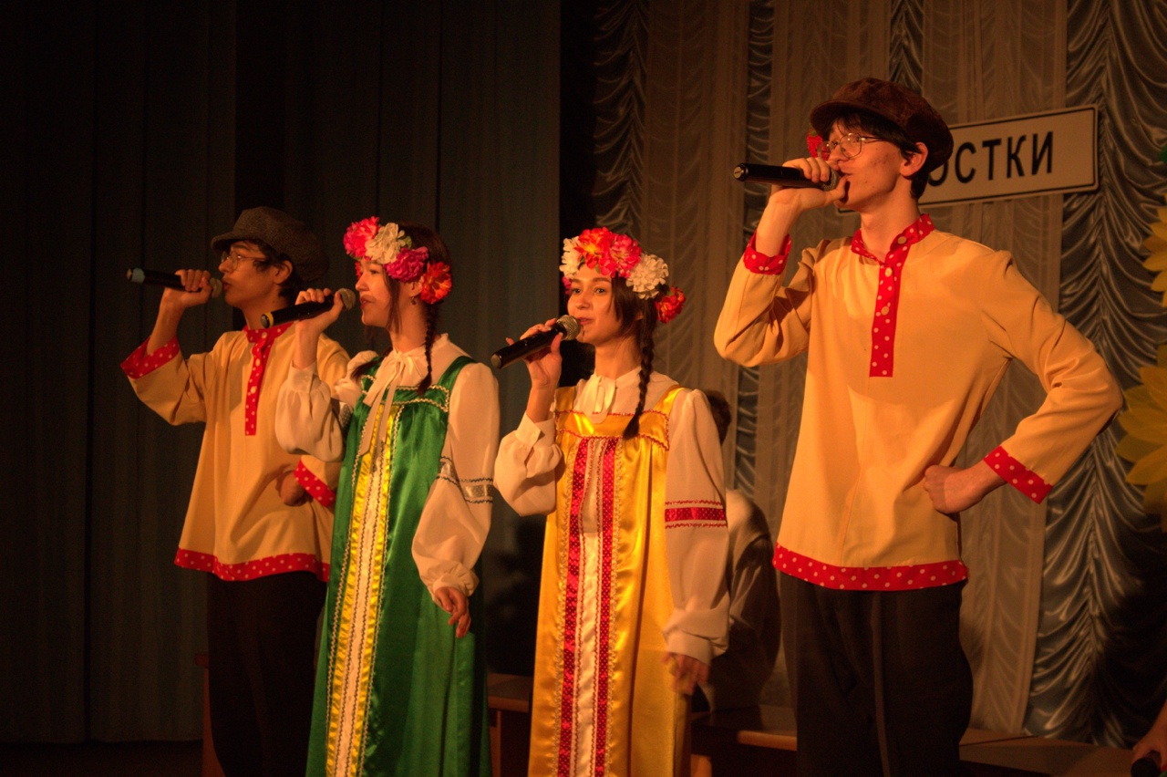 Опубликовано: 28.12.202326 декабря в актовом зале нашего техникума развернулись сцены с узнаваемыми героями известных рассказов Василия Макаровича Шукшина: «Степкина любовь», «Сапожки», «Микроскоп», «Игнаха приехал», «Космос, нервная система и шмат сала», «Степка». Ироничные, часто парадоксальные ситуации и характеры персонажей авторской прозы отличались своей самобытностью - слитой воедино открытостью и простотой, лиризмом и угловатым гротеском героев – «чудиков» одновременно.