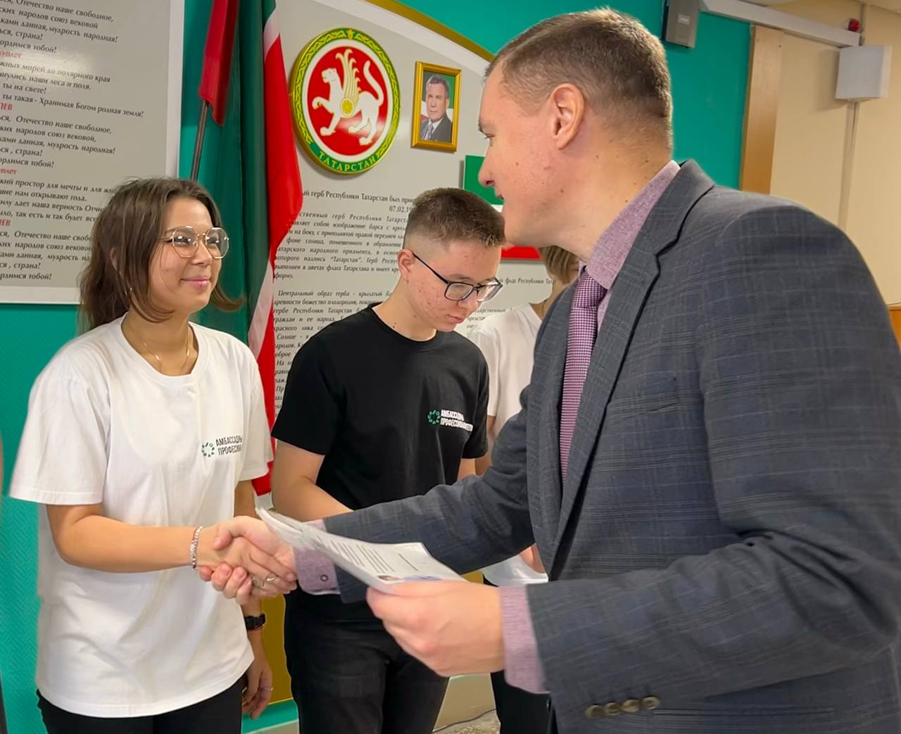 Заместитель директора по УВР Савченко Р. А. вручил нашим студентам Благодарственные письма от штаба амбассадоров за их активное участие в реализации мероприятий проекта и значительный вклад в развитие системы среднего профессионального образования в 2023 году.