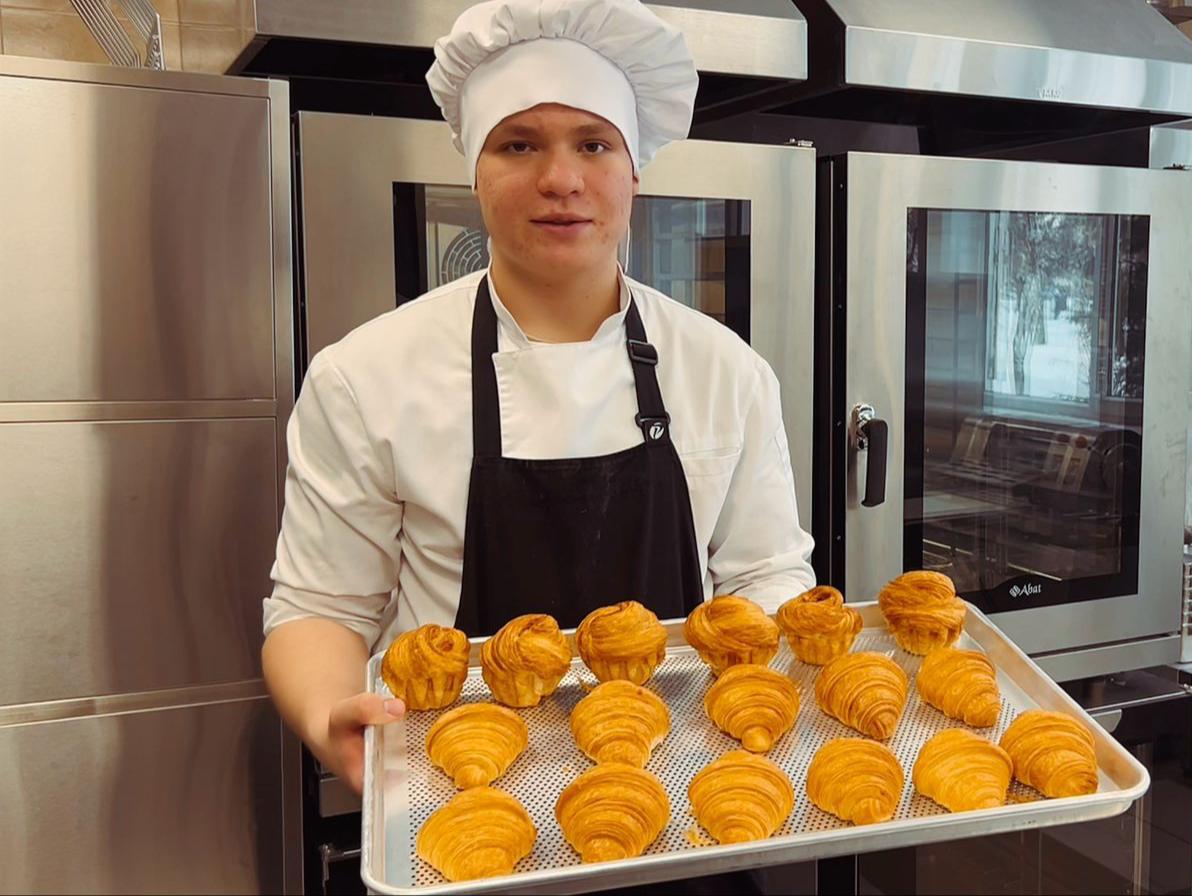 Руслан отлично справился с конкурсным заданием (приготовление дрожжевого слоёного теста и изделий из него: круассаны и датская слойка), заняв 3 место среди 8 участников из СПОО Республики Татарстан.