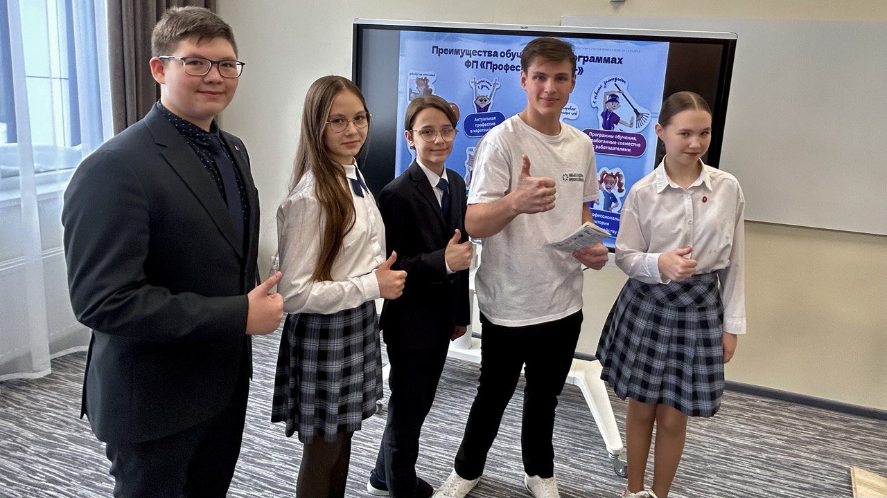 Опубликовано: 21.02.2024Амбассадоры фп «Профессионалитет» и сотрудники НТТ продолжают встречаться с учениками школ города.