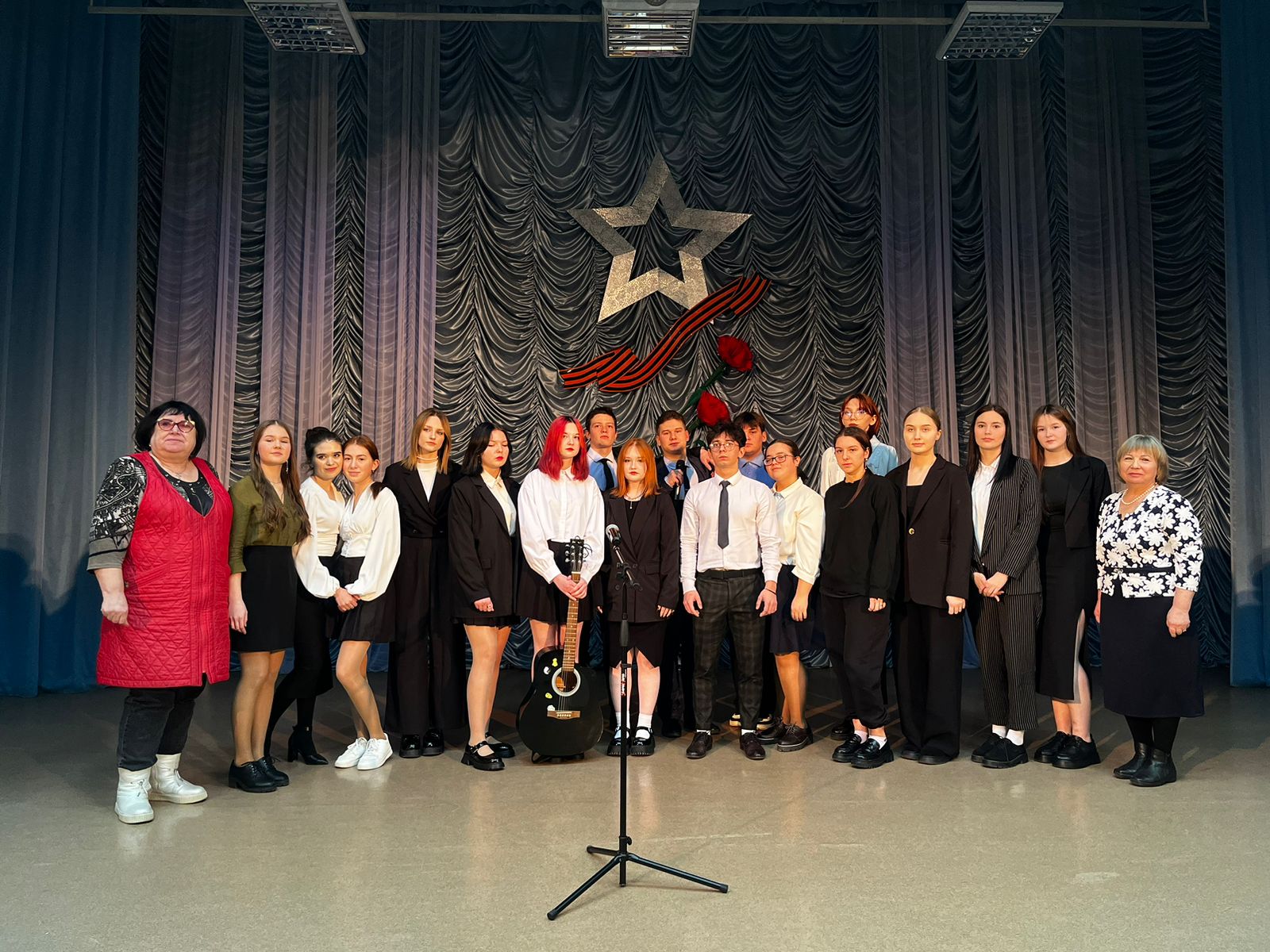 Прозвучали песни военных лет, а так же песни В.Цоя в исполнении группы студентов. Кульминацией программы стала -минута молчания в память о павших героях нашего города, республики Татарстан, героев России.