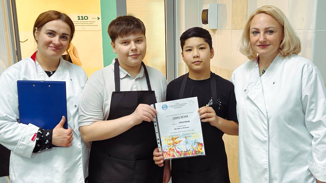 Опубликовано: 15.03.2024В рамках Масленичной недели и популяризации ФП «Профессионалитет» 14 марта в НТТ прошел конкурс профессиональгого мастерства «Десерт из блинов» среди учеников СОШ N15,35 и 42