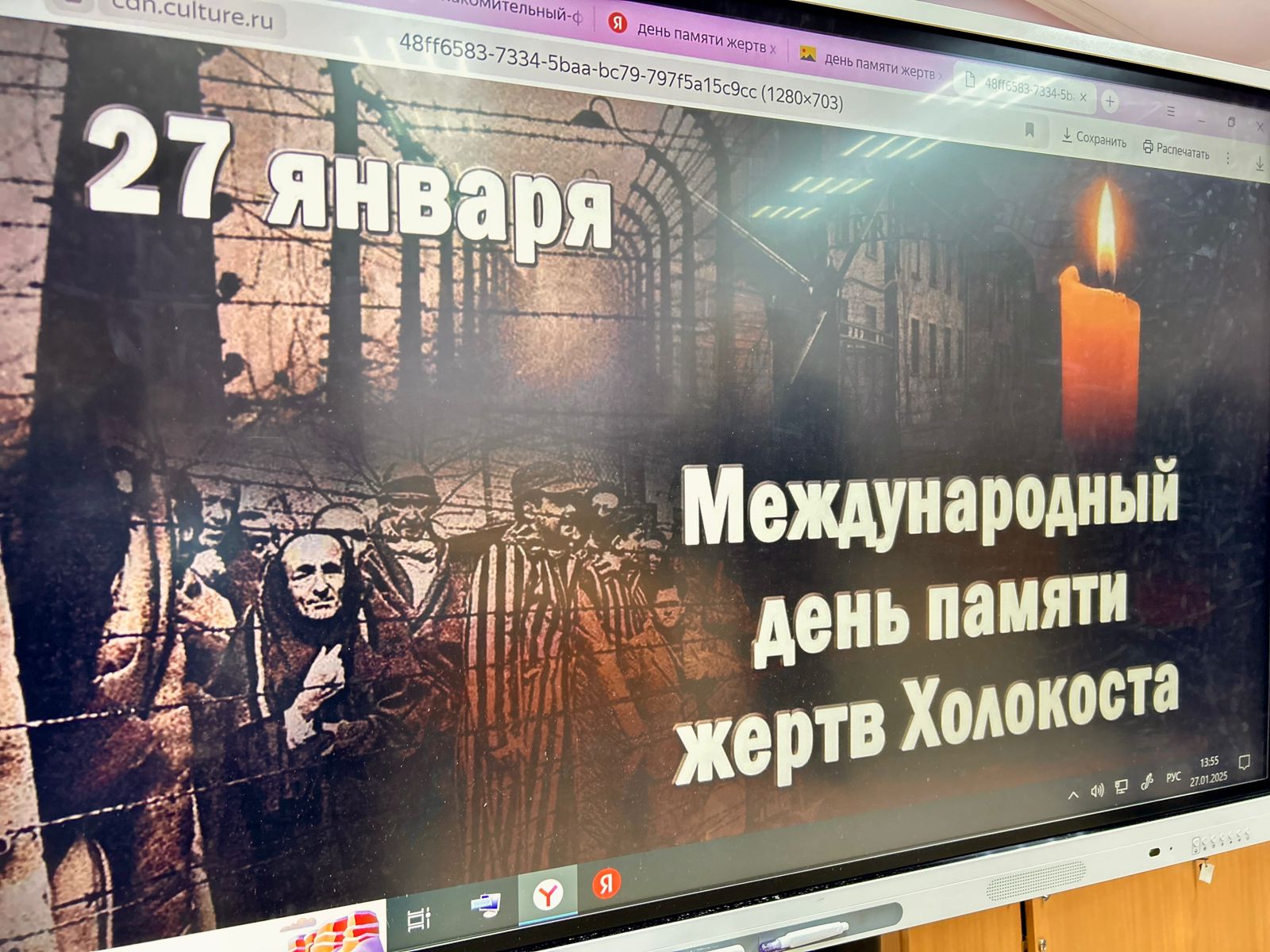 Опубликовано: 27.01.2025Ежегодно 27 января Отмечается Международный день памяти жерт Холокоста в соответствии с резолюцией Генеральной Ассамблеи Организации Обьединенных Наций, принятой в 2005 году.