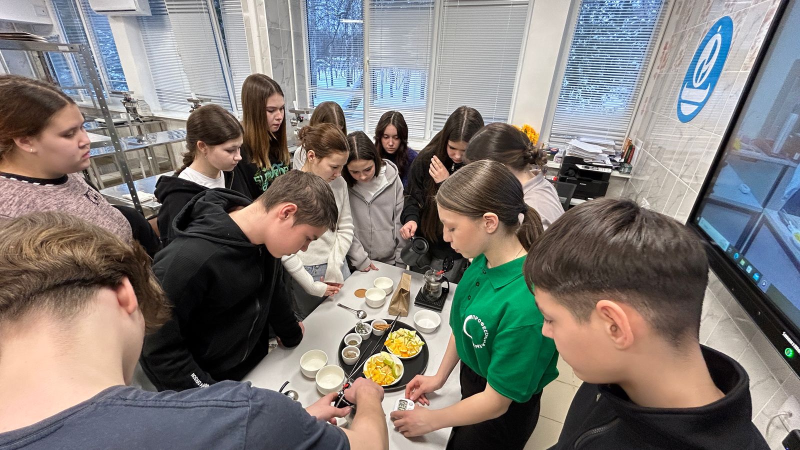 Профориентационная программа включала в себя экскурсии по учебным лабораториям техникума, где школьники смогли оценить современное оснащение и условия обучения. Ребята приняли участие в профессиональных пробах и мастер-классах по приготовлению горячих вторых блюд, закрытых пирогов, кондитерских изделий и молочных напитков, получив возможность на практике познакомиться с выбранной профессией.