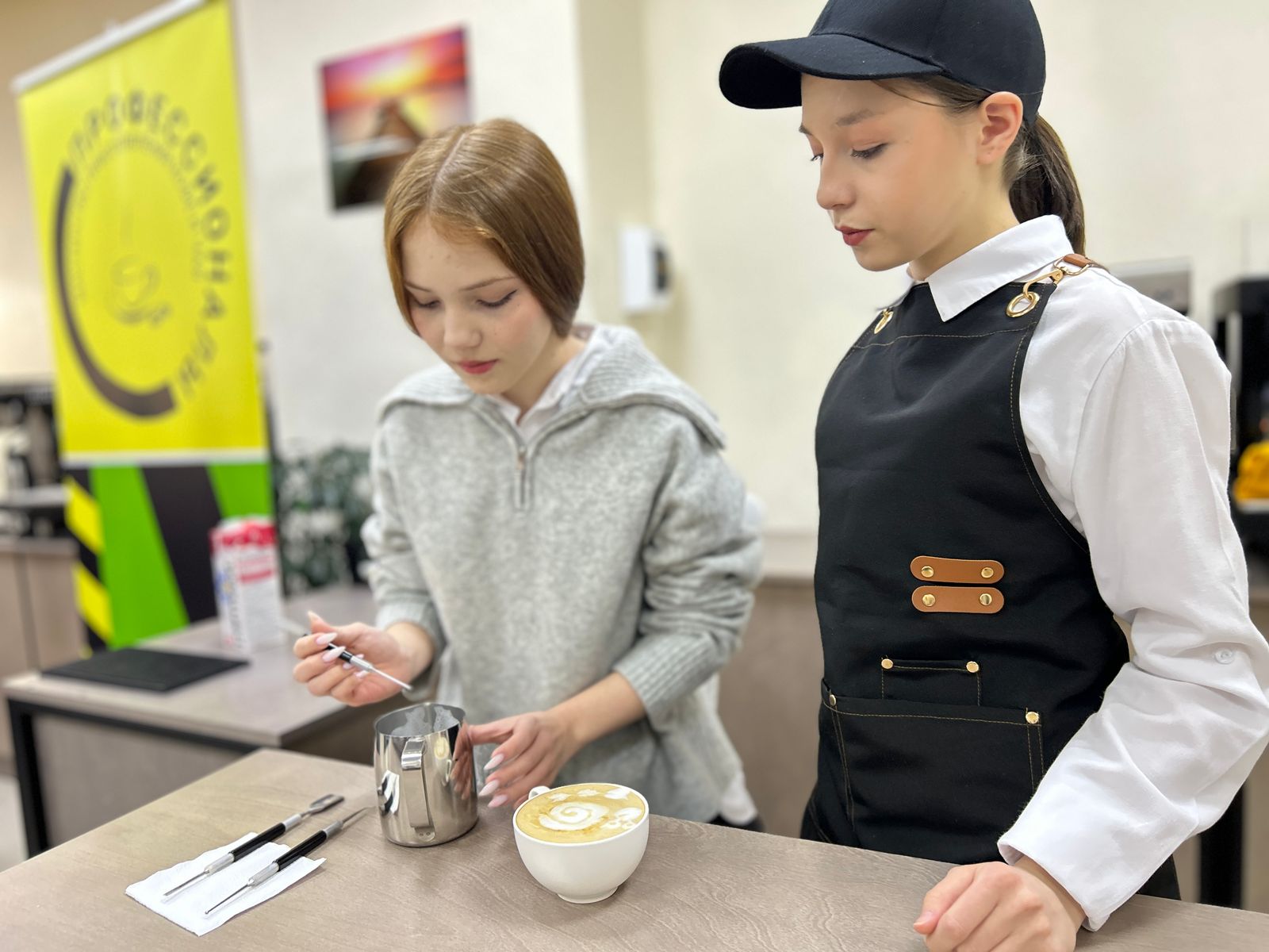 Кульминацией недели стала встреча с призёрами чемпионатов профессионального мастерства: Азалией Шамгуновой, серебряным призёром Чемпионата «Профессионалы-2025» по компетенции «Мастерство приготовления кофе и чая», и Александрой Семёновой, серебряным призёром «Абилимпикс-2023» по компетенции «Ресторанный сервис». Девушки рассказали о своем опыте участия в престижных конкурсах, подчеркнув, что такие соревнования — отличный шанс проверить свои силы, получить признание профессионального сообщества и открыть новые карьерные перспективы. Кроме того, Азалия и Александра провели мастер-классы по приготовлению латте-арт и купажированию чая, позволив будущим абитуриентам примерить на себя роль бариста.