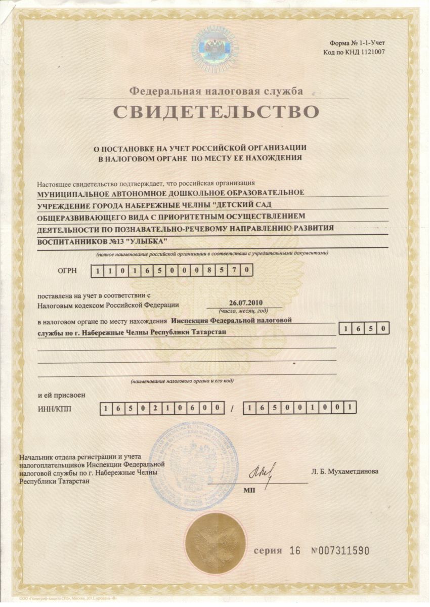 свидетельство о постановке на учет в налоговый орган ДОУ 13.jpg