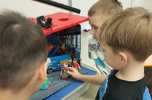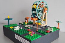 Вместе они сделали из конструктора LEGO колесо обозрения, а при помощи моторчика, редуктора, батареек и включателя эта карусель крутится под музыкальное сопровождение. -