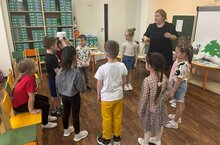 В качестве физкультминутки была выбрана татарская народная игра «Тюбетейка», где дети повторили вежливые слова, счет и четверостишие про мяч на татарском языке.