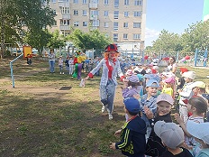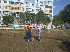 1 июня радостно, звонко и красочно прошел праздник детства - День защиты детей и в нашем детском саду. Все педагоги старались сделать так, чтобы этот день надолго запомнился детям.В гости к детям пришли весеслые клоуны Плюх и Ах. Вместе с клоунами дети участвовали в играх, отгадывали загадки, пели песни, танцевали.