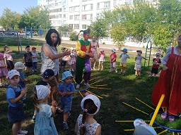 Опубликовано: 18.08.2023Звонкий смех, счастливые лица наших воспитанников - такая атмосфера царила сегодня в нашем саду на веселом развлечении для детей средних и старших групп. На празднике ребята вместе с Веселушкой и клоуном Мультяшкой совершили увлекательное путешествие в страну детства, где участвовали в веселых конкурсах, играх, эстафетах . Пели песни, отгадывали загадки, танцевали вместе с героями.