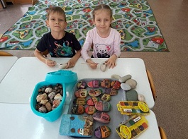 Дети старшей группы №4, под руководством воспитателя Нелли Максимовны очень любят рисовать на камнях. И это у них очень хорошо получается, они создают настоящие "шедевры".![]()